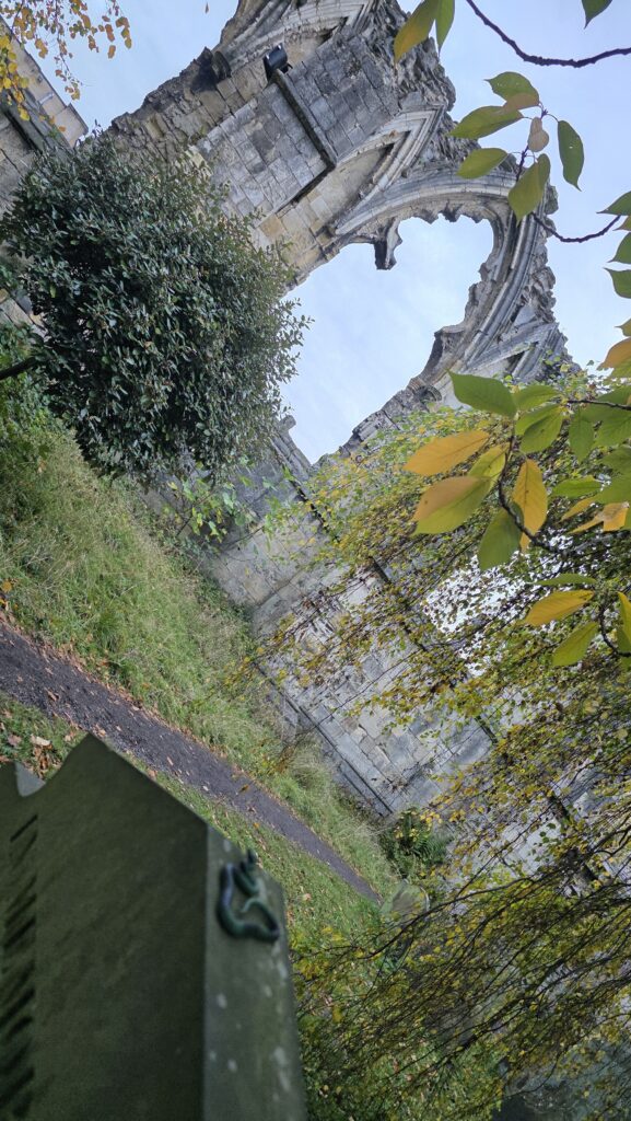 Once we made it to York, Stella thought it was fun and not creepy at all to hang out in the graveyard admiring a ruined abbey.