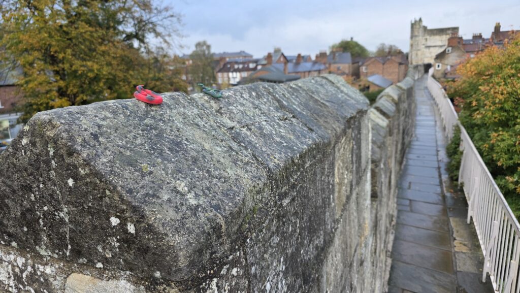 After waking up early in York, Steve and Stella looked over the medieval walls to make sure no Vikings were attacking.