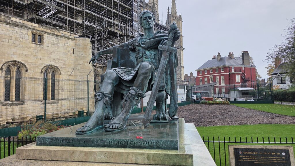Steve was a little dismissive of Roman emperor Constantine because the statue showed him with a broken sword.