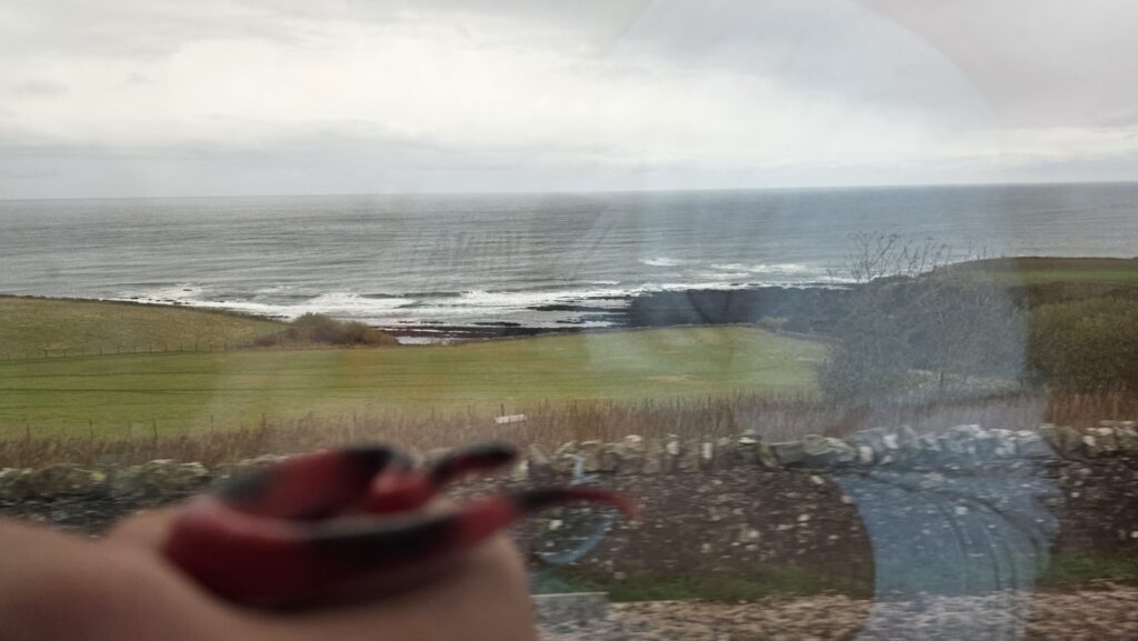 Steve was very concerned about watching out the train window to Edinburgh as we traveled along the Northumbrian coast – he was still worried about Vikings.