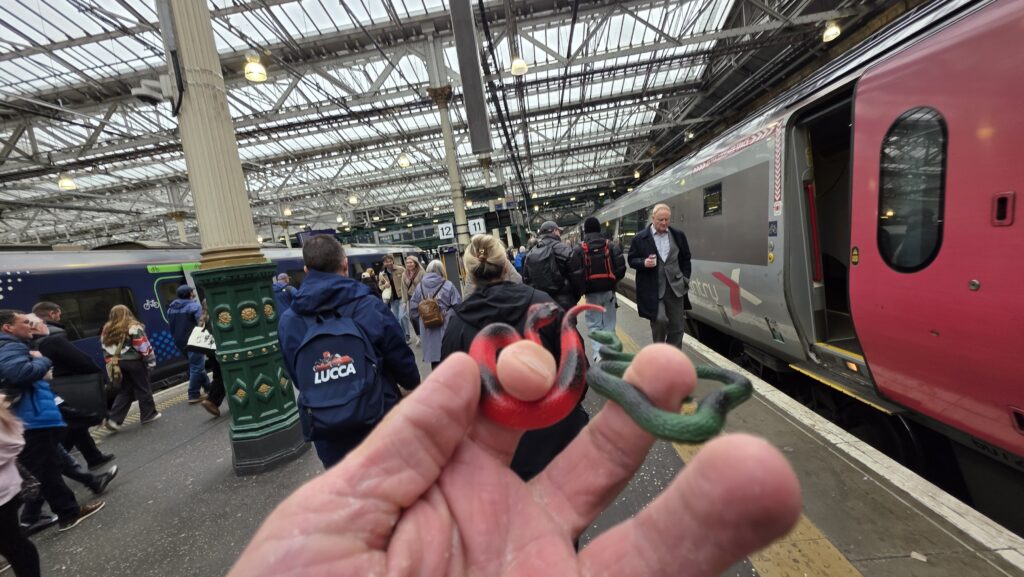 Both snakes agreed that the train station in Edinburgh (Waverly) was very crowded but very nice.