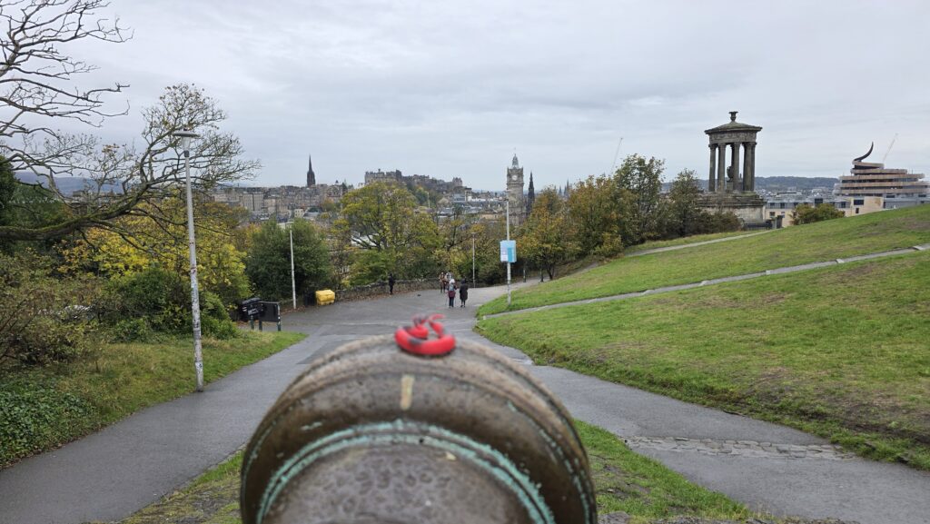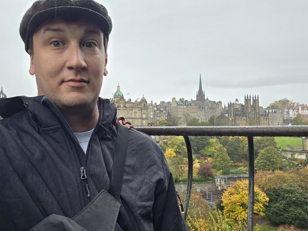Steve wanted to sit on top of the Calton Hill to look back at the Old Town in Edinburgh…