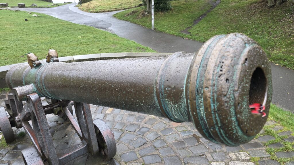 Today when we visited Edinburgh Castle and were looking down the Royal Mile from the battlements, Steve refused to let Stella be behind him on the cannon after yesterday.