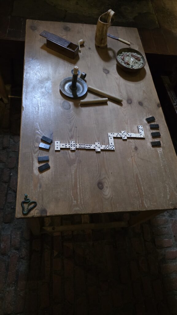When we visited the castle prisons, Stella kept getting distracted and wanted to play with dominoes. She kept saying, “But I want to win the chickenfoot game like at Grandma’s!”
