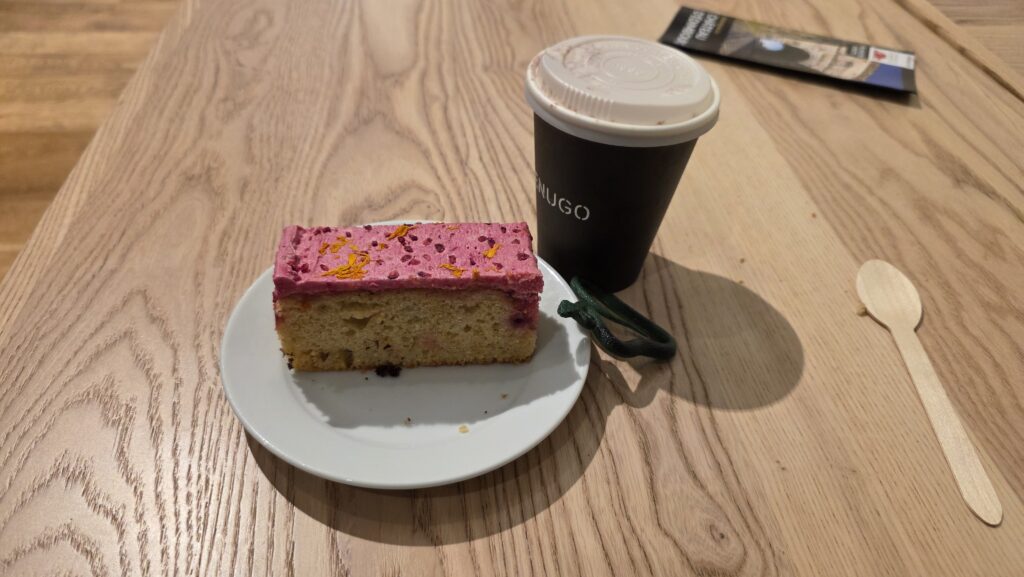 Once again, Stella’s biggest concern at a museum was what she could have to eat in the cafe, and it turned out to be a raspberry and orange traybake and a cappuccino.