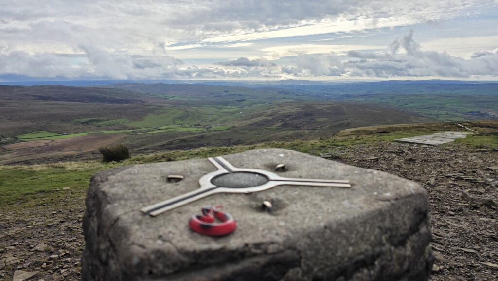 Steve wanted to pose on top of Pen-y-Ghent. Stella was not getting out in the cold wind, especially after she got worn out climbing up the steep slope.