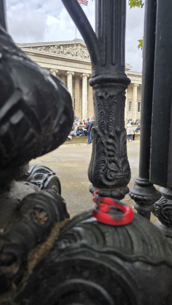 Steve was peeking through the fence at the British Museum thinking about stealing a mummy or three.